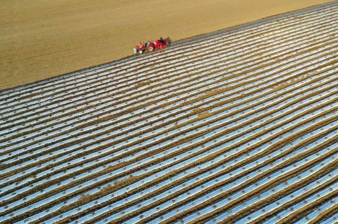 ▲ 2月1日,安徽省蒙城縣小辛集鄉(xiāng)李大塘村,農(nóng)民正在利用機(jī)械播種馬鈴薯。眼下,氣溫回升,當(dāng)?shù)靥镩g地頭一片繁忙景象。(胡衛(wèi)國/攝)