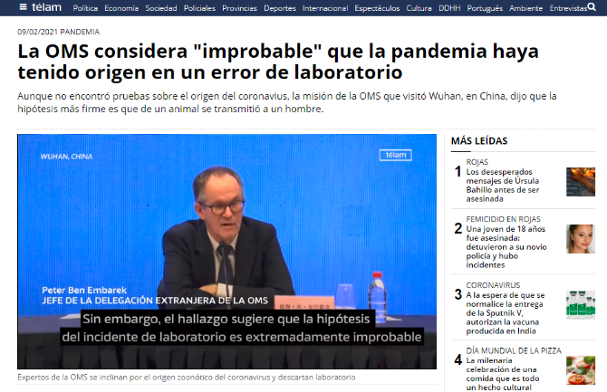 近日來(lái),拉美多國(guó)的主流媒體對(duì)中國(guó)-世界衛(wèi)生組織聯(lián)合專家組在武漢就新冠病毒溯源進(jìn)行考察予以高度關(guān)注,普遍認(rèn)可專家組初步調(diào)查結(jié)果中有關(guān)新冠病毒的科學(xué)客觀論斷。