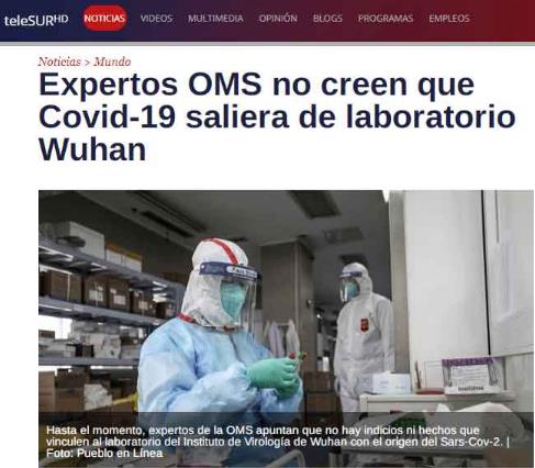 拉美地區(qū)重要的跨國(guó)媒體委內(nèi)瑞拉南方電視臺(tái)則在近期持續(xù)關(guān)注世衛(wèi)國(guó)際專家在武漢的考察,并報(bào)道說(shuō),專家在走訪武漢病毒研究所后,對(duì)該所的安全性、設(shè)備的完備性等給出高度評(píng)價(jià),也對(duì)中國(guó)專家團(tuán)隊(duì)對(duì)新冠病毒的研究表示肯定。同時(shí),世衛(wèi)組織官員也對(duì)中國(guó)在調(diào)查過(guò)程中的全力配合表達(dá)贊賞。