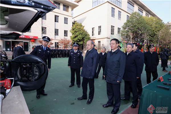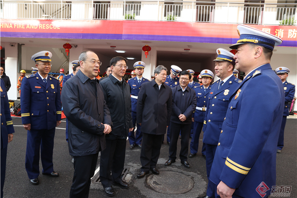 在昆明市寶善街消防救援站內(nèi),快速升降、斜向救援、搭建繩橋救援等救援課目演示一一展開。阮成發(fā)、王予波衷心感謝大家的辛勤付出。阮成發(fā)強調(diào),每當(dāng)遇到險情,消防部隊都是聞令而動、赴湯蹈火,為保障人民生命財產(chǎn)安全發(fā)揮了不可替代的作用,涌現(xiàn)出了許多可歌可泣的英雄模范人物。春節(jié)期間,大家要枕戈待旦,一旦有險情,就迅速出動。
