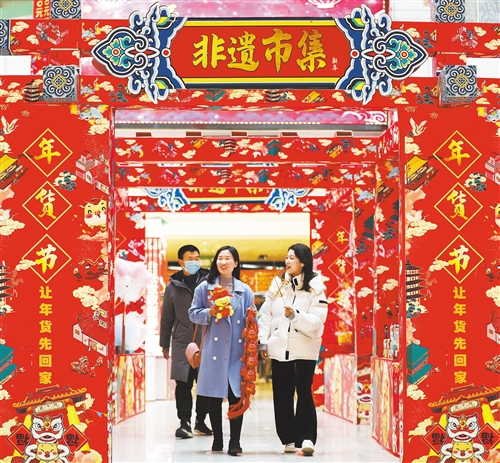 2月10日,河北省遷安市游客正在“非遺年味市集”上購物賞景。春節(jié)臨近,遷安市“非遺年味市集”匯集了豐富多彩的非遺文化項(xiàng)目和民俗文化展,為市民送上豐富的“年味大餐”。蔡常穎攝