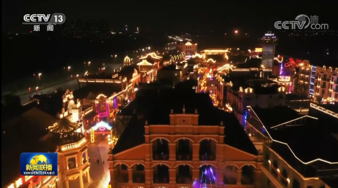 夜幕降臨,華燈初上。在北京,22萬件燈籠燈飾及近600處景觀小品,節(jié)日里的首都流光溢彩、絢麗多姿。在重慶兩江新區(qū),城市天幕、裸眼3D等迎春燈光秀營造出夢幻般的光影世界。
