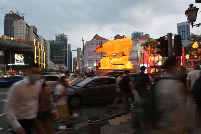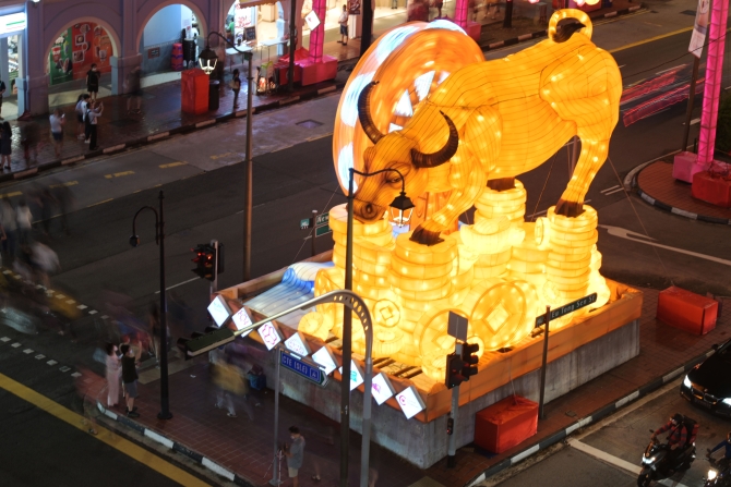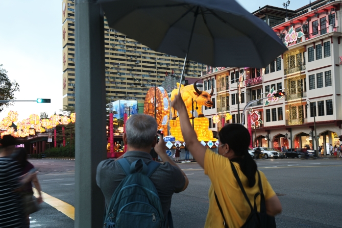 2月10日,市民在新加坡牛車水拍攝農(nóng)歷新年燈飾。