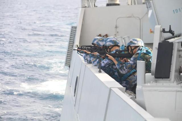2月10日,南部戰(zhàn)區(qū)海軍某護(hù)衛(wèi)艦支隊(duì)百色艦位于某海域進(jìn)行反恐反海盜訓(xùn)練。蔡盛秋 攝