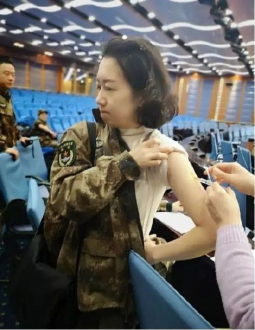 一張醫(yī)療隊(duì)員出發(fā)前打針的照片