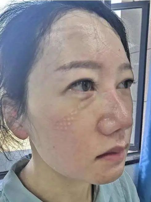 她的臉頰過敏紅腫