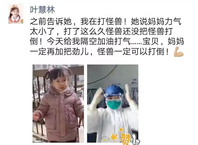 她說:“媽媽去打怪獸!”