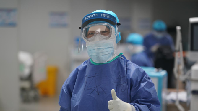 正在火神山醫(yī)院的病房里忙碌