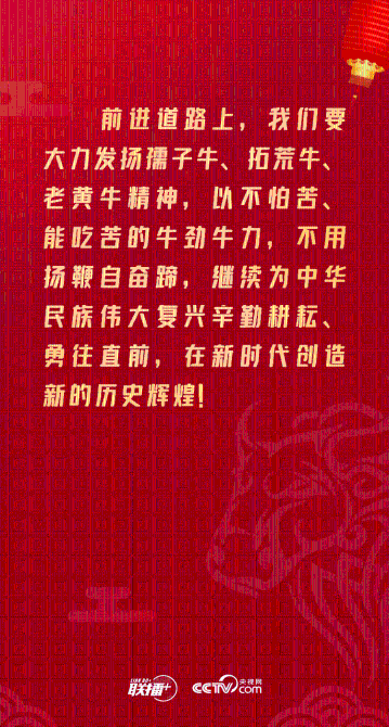 在中華文化里,牛是勤勞、奉獻、奮進、力量的象征。猶記2020年12月31日,習近平總書記在全國政協(xié)新年茶話會上強調(diào)“發(fā)揚為民服務孺子牛、創(chuàng)新發(fā)展拓荒牛、艱苦奮斗老黃牛的精神”。此次,總書記再次提到“三?!本瘢⑻栒偃h全國各族人民“不用揚鞭自奮蹄”,在新時代創(chuàng)造新的歷史輝煌。
