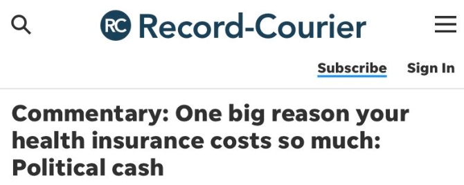△俄亥俄州波特奇縣日報Record-courier發(fā)文指出,金錢政治是美國醫(yī)療保險價格高昂的重要原因。
