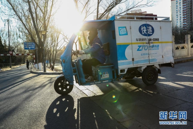 快遞員“緊張哥”李杰在北京運送快遞的路上(2020年12月16日攝)。新華社記者 張玉薇 攝