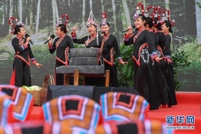 在“半條被子”故事發(fā)生地湖南省郴州市汝城縣沙洲瑤族村,演員在2021年全國“村晚”示范展示活動中表演節(jié)目(1月28日攝)。新華社記者 陳澤國 攝