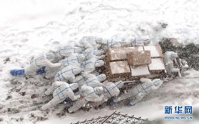 大連海洋大學(xué)的志愿者們推著滿載的三輪車上坡,將物資送到學(xué)生宿舍。1月6日,這個畫面在互聯(lián)網(wǎng)上廣泛傳播,感動了萬千網(wǎng)友。新華社發(fā)(大連海洋大學(xué)供圖)