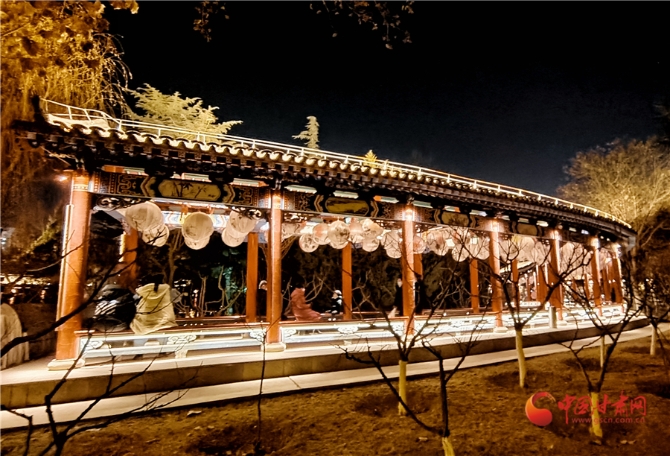 今年根據(jù)疫情防控需要,西固區(qū)區(qū)委、區(qū)政府決定春節(jié)期間暫停舉辦“永不落幕的燈會(huì)”,但是流光溢彩的金城公園二期古建群依然將金城的夜色伴亮,為市民帶來(lái)新春的問(wèn)候。