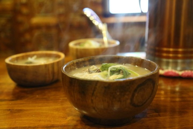“古突”夜當晚,拉薩市恩惠苑社區(qū)居民次仁巴珠家熱氣騰騰的“古突”(2月10日攝)。新華社記者 張兆基 攝