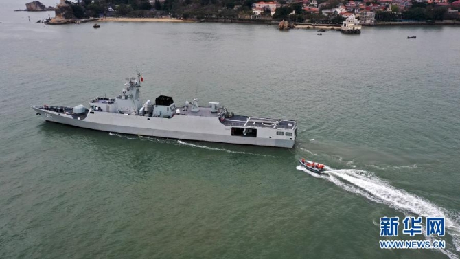 2月9日,海軍銅仁艦從某軍港解纜啟航,奔赴某海域執(zhí)行春節(jié)戰(zhàn)備值班任務(wù)(無人機(jī)照片)。新華社發(fā)(周道先 攝)