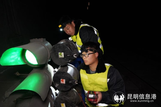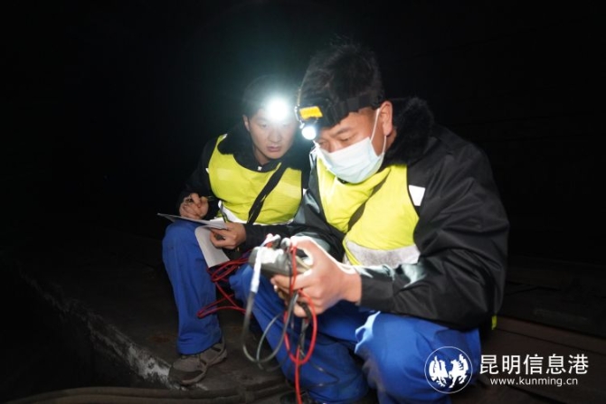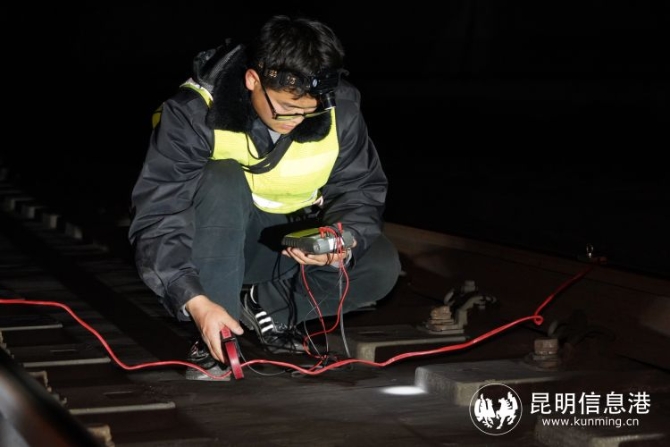 昆明信息港訊 記者上官艷君 通訊員周靖博 何思遠 2月15日0時,在云南楚雄站工具金屬碰撞聲叮咚作響,在深夜格外明顯。15名小伙身背工具包,整齊列隊前行,在寒風(fēng)中開始凌晨的信號設(shè)備集中檢修。