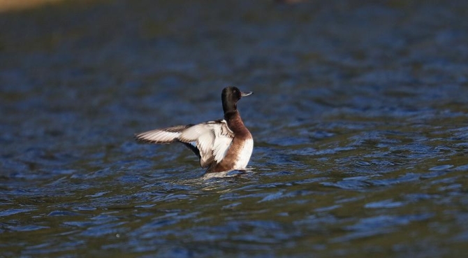 2月14日在云南省騰沖市北海濕地省級(jí)自然保護(hù)區(qū)中拍攝到的青頭潛鴨。(云南省騰沖市融媒體中心供圖)