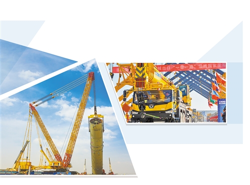 左圖徐工全球最大的4000噸級(jí)履帶式起重機(jī)在實(shí)施吊裝作業(yè)。上圖 徐工起重機(jī)械駛向“一帶一路”建設(shè)工地。 (徐工集團(tuán)工程機(jī)械有限公司供圖)