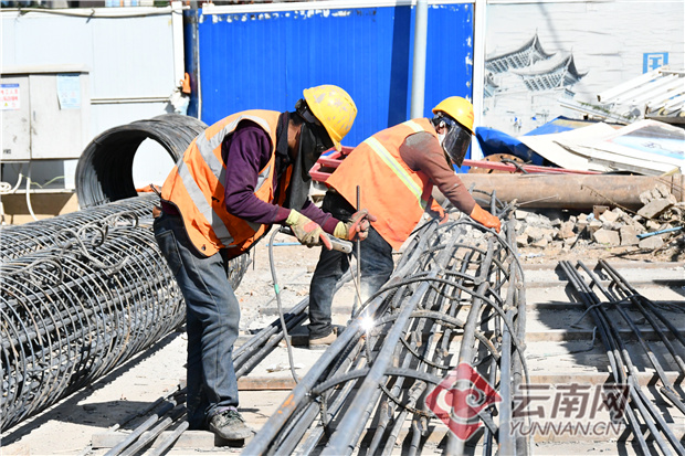 新春佳節(jié)是合家團圓的日子,而在昆明地鐵5號線土建3標(biāo)圓通公園站、白云路站建設(shè)工地上,仍是焊花飛濺、機聲轟鳴,演繹著春節(jié)期間不停工的勞動“交響曲”。