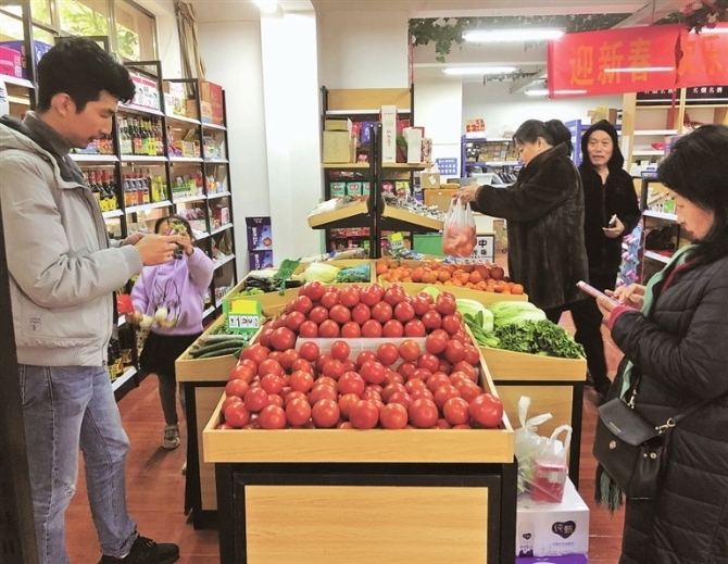 南湖薈永輝超市則提供了送貨上門服務(wù),顧客只要在微信小程序或第三方平臺上下單,穿梭于全城的網(wǎng)約送餐員一小時之內(nèi)便可將貨物送達顧客手中。