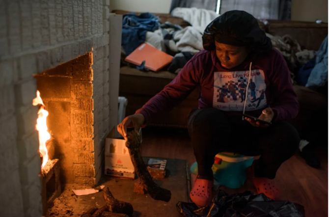△當地時間2月17日,得克薩斯州民眾在家中燒木取暖。