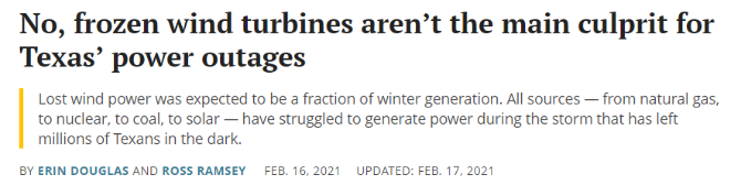得克薩斯州電力系統的崩潰,竟然成為了一些政客攻擊清潔能源的借口。