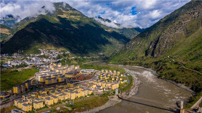 云南省怒江傈僳族自治州瀘水市大興地鎮(zhèn)維拉壩珠海社區(qū)一景,這里安置了來自109個傈僳族寨子的700多戶群眾(2020年11月5日攝,無人機照片)。新華社記者胡超攝