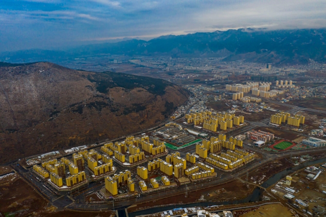 易地扶貧搬遷縣城集中安置區(qū)會澤新城(2021年1月17日攝,無人機照片)。新華社記者江文耀攝