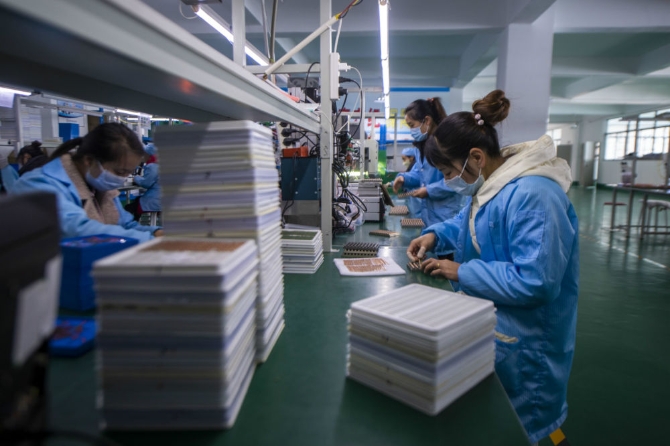 搬遷群眾在會澤新城扶貧車間上班(2021年1月14日攝)。新華社記者江文耀攝
