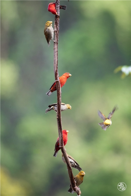 30 gorgeous scarlet finches spotted in Gaoligong Mountain
