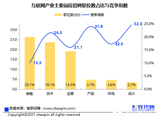 互聯(lián)網(wǎng)產(chǎn)業(yè)競爭最激烈的崗位為設(shè)計(jì)和產(chǎn)品