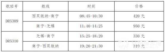 20日新開的“西雙版納-南寧-無錫”航線周一到周六執(zhí)飛,航班信息如下: