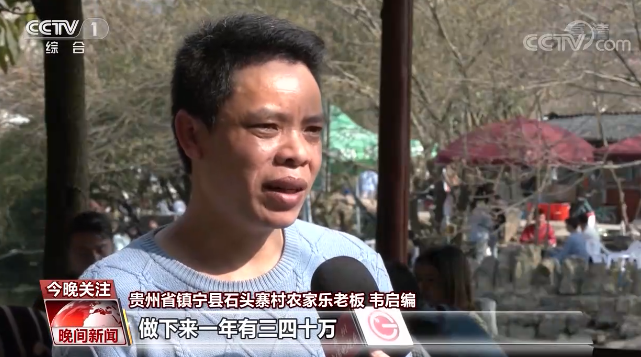 韋啟編,貴州黃果樹(shù)鎮(zhèn)石頭寨村村民。自從公路修到了家門(mén)口,自己當(dāng)農(nóng)家樂(lè)老板的夢(mèng)終于實(shí)現(xiàn)了。如今在貴州,只要是超過(guò)三十戶的村民組,硬化路都會(huì)修到家門(mén)口。當(dāng)?shù)卮蛲肃l(xiāng)村旅游和產(chǎn)業(yè)發(fā)展之路,通過(guò)“民族村寨+特色餐飲+家庭旅館”“合作社+體驗(yàn)旅游+貧困農(nóng)戶”等模式,用旅游業(yè)覆蓋貧困戶。