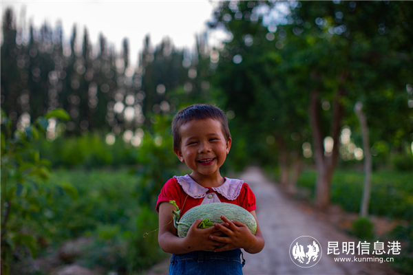 新疆巴楚,瓜農(nóng)的女兒古麗娜孜笑逐顏開(kāi)