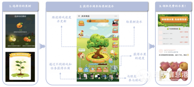 ▲“多多果園”成功將游戲娛樂與扶貧助農(nóng)相結(jié)合,用戶通過社交互動的方式培育虛擬果樹,可以免費收到一份由拼多多送出的扶貧助農(nóng)水果。
