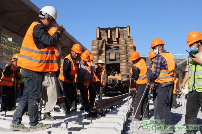 中鐵一局玉磨鐵路鋪架制梁項(xiàng)目部總工程師任福中介紹,中鐵一局玉磨鐵路項(xiàng)目部采取邊鋪邊架、人停機(jī)不停、雙班輪流作業(yè)模式,每天單班最快以8千米的速度高效推進(jìn)鋪軌施工。截至目前,項(xiàng)目部累計(jì)完成架梁350孔、正線鋪軌281公里、站線鋪軌60公里、道岔鋪設(shè)301組、線路上砟57萬(wàn)方。(普洱日?qǐng)?bào) 記者劉紹容)