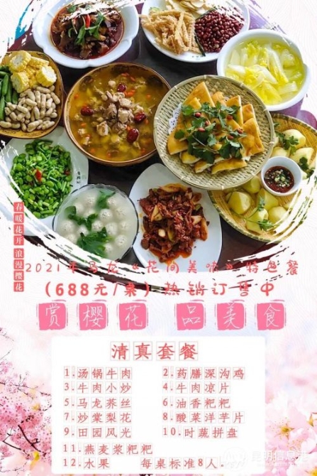 4、“花間美味”特色餐用餐時(shí)間:3月6日、3月7日、3月8日每天16:30-20:30,購(gòu)買(mǎi)時(shí)請(qǐng)謹(jǐn)慎選擇用餐日期,一經(jīng)訂購(gòu)成功,不可調(diào)換用餐日期。