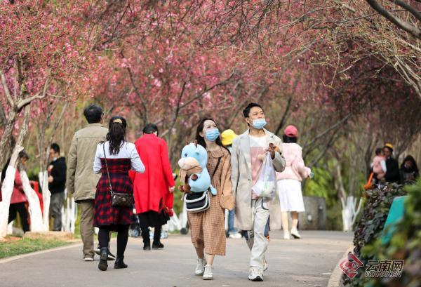 圓通山百年花潮是昆明每年開啟春天的盛事。每年春季,人們到圓通山上踏青賞花,看花燈聽調(diào)子,因入園人數(shù)逐年增加,形成了花海人潮的“圓通櫻潮”自然與人文景觀,延續(xù)百年。