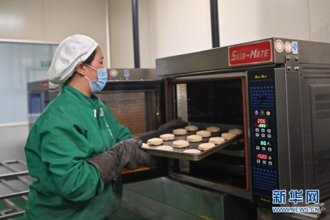 2月26日,在四川省阿壩縣托崗黑青稞生產(chǎn)車間內(nèi),工作人員把成型后的黑青稞餅放入烤爐。 近年來,四川省阿壩藏族羌族自治州阿壩縣依托當?shù)靥厣Y源,致力于黑青稞食品研發(fā)及生產(chǎn),并將黑青稞餅作為學生的營養(yǎng)早餐,送進阿壩縣、紅原縣、若爾蓋縣等地的學校。新華社記者 胥冰潔 攝