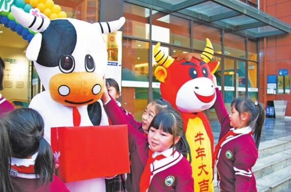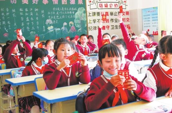 武成小學(xué)教育集團(tuán)龍泉路校區(qū)的同學(xué)們領(lǐng)到了牛寶寶發(fā)的祝福紅包 記者 唐偉 攝