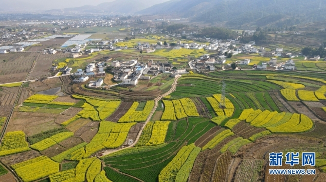 乍暖還寒的三月,在平坦的云南省保山市施甸壩子,油菜花競相開放。空曠的田野上,一朵朵、一簇簇,春風拂過,黃燦燦的油菜花此起彼伏,蔚為壯觀。(楊磊、吳丹、段曉波/攝影報道)