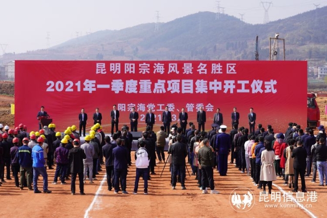 昆明陽宗海風(fēng)景名勝區(qū)黨工委書記、管委會主任郝國棟出席開工儀式并宣布項目集中開工