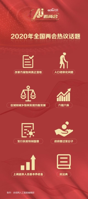 特殊之年的全國兩會,政府要過緊日子、發(fā)行抗疫特別國債、上調(diào)退休人員基本養(yǎng)老金、房住不炒、減稅降費等成為全網(wǎng)關(guān)注度較高的話題。此外,在全面建成小康社會的沖刺階段,“改革方案如何真正落地”“人口老齡化問題”“區(qū)域和城鄉(xiāng)如何實現(xiàn)均衡發(fā)展”“六穩(wěn)”“六?!钡瘸蔀?020年全國兩會廣大網(wǎng)民關(guān)注的民生熱點。