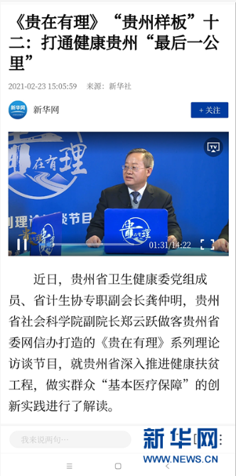 《貴在有理》是貴州省委網(wǎng)信辦傾力打造的網(wǎng)上理論宣傳品牌,五十集系列理論訪談節(jié)目圍繞“貴州縮影”、“貴州新路”和“貴州樣板”三個主題,邀請權(quán)威專家學(xué)者、各級實踐工作者共同深入探討交流,從“制度優(yōu)勢、理論創(chuàng)新、治理效能、實踐探索”等方面,系統(tǒng)梳理、提煉貴州堅決打贏脫貧攻堅戰(zhàn),書寫高質(zhì)量發(fā)展貴州篇章的理論思考和工作經(jīng)驗。