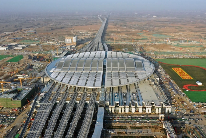 這是2020年12月23日拍攝的京雄城際鐵路雄安站(無(wú)人機(jī)照片)。新華社記者 牟宇 攝