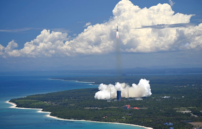 2020年7月23日12時(shí)41分,我國(guó)在海南島東北海岸中國(guó)文昌航天發(fā)射場(chǎng),用長(zhǎng)征五號(hào)遙四運(yùn)載火箭將我國(guó)首次火星探測(cè)任務(wù)“天問(wèn)一號(hào)”探測(cè)器發(fā)射升空。新華社記者 郭程 攝