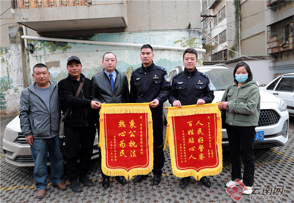 3月4日,昆明盤龍公安分局董家灣派出所舉行涉案車輛發(fā)還儀式 ,報警人找回租借出去后就“消失”多日的車輛。