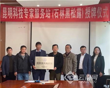 3月3日,昆明科技專家服務(wù)站授牌儀式在石林彝族自治縣鹿阜鎮(zhèn)鎮(zhèn)阿烏村委會(huì)大黑塘村云南融奧經(jīng)貿(mào)有限公司石林塊菌(黑松露)實(shí)驗(yàn)示范科普基地舉行,這也是昆明市科協(xié)授予石林縣的首個(gè)科技專家服務(wù)站。