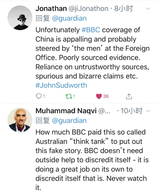 值得關(guān)注的是,當(dāng)衛(wèi)報把這篇反華報道放在國際社交媒體上時,收獲的近200個轉(zhuǎn)推和評論絕大多數(shù)都支持中國政府的立場,這些英國受眾用自己的親身經(jīng)歷和實際感受回答了英國大使的問題。